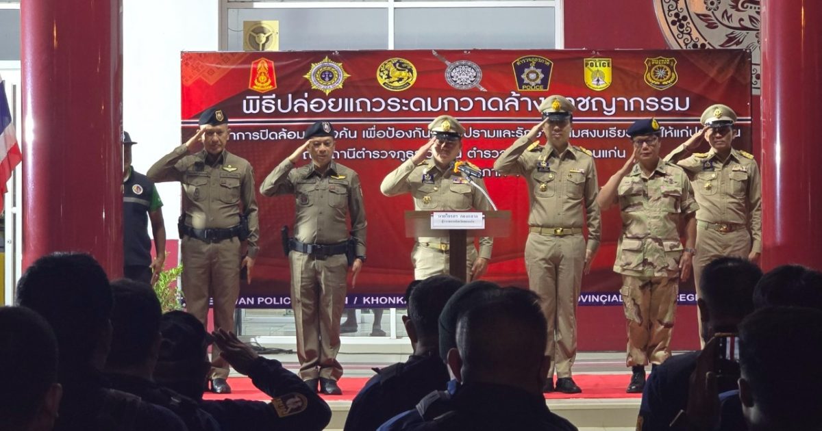 วันที่ 26 มี.ค.68 เวลา 05.30 น. นายไกรสร กองฉลาด ผู้ว่าราชการจังหวัดขอนแก่น พร้อมด้วย พล.ต.ต.อนุวัตร สุวรรณภูมิ ผบก.ภ.จว.ขอนแก่น ,พ.ต.อ.ถนอมสิทธื์ วงษ์วิจารณ์ รอง ผบก. ภ.จว.ขอนแก่น พ.ต.อ.ภิภัธ พิมพ์กลม ผกก.สภ.เวฬุวัน พร้อมด้วยข้าราชการตำรวจชุดสืบสวน สภ.เวฬุวัน และหน่วยงานที่เกี่ยวข้อง ปล่อยระดมกวาดล้างอาชญากรรมเกี่ยวกับอาวุธปืนและสิ่งผิดกฎหมายอื่นๆ