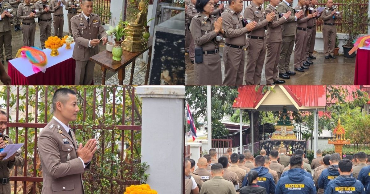 เมื่อวันที่ 7 มี.ค.2568 เวลา 07.00 น. พ.ต.อ.ภิภัธ พิมพ์กลม ผกก.สภ.เวฬุวัน เดิมดำรงตำแหน่ง ผกก.สภ.โนนสัง ภ.จว.หนองบัวลำภู พร้อมข้าราชการตำรวจ สภ.เวฬุวัน ทุกนาย นำข้าราชการตำรวจสวดมนต์ไหว้พระและบรวงสรวงสิ่งศักสิทธิ์ ประจำสถานีตำรวจ เพื่อเป็นสิริมงคลแก่ข้าราชการตำรวจทุกนาย
